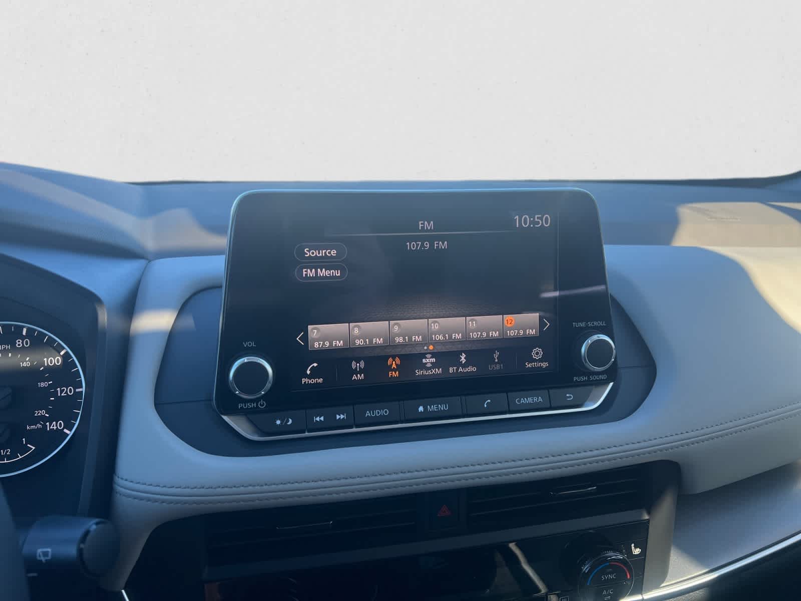 - Radio: AM/FM NissanConnect -inc: 6 speakers plus 2 tweeters, Apple CarPlay, Android Auto, 8" color touch screen display, Bluetooth®, 2 front USB type-C, Wi-Fi hotspot and NissanConnect Services powered by SiriusXM