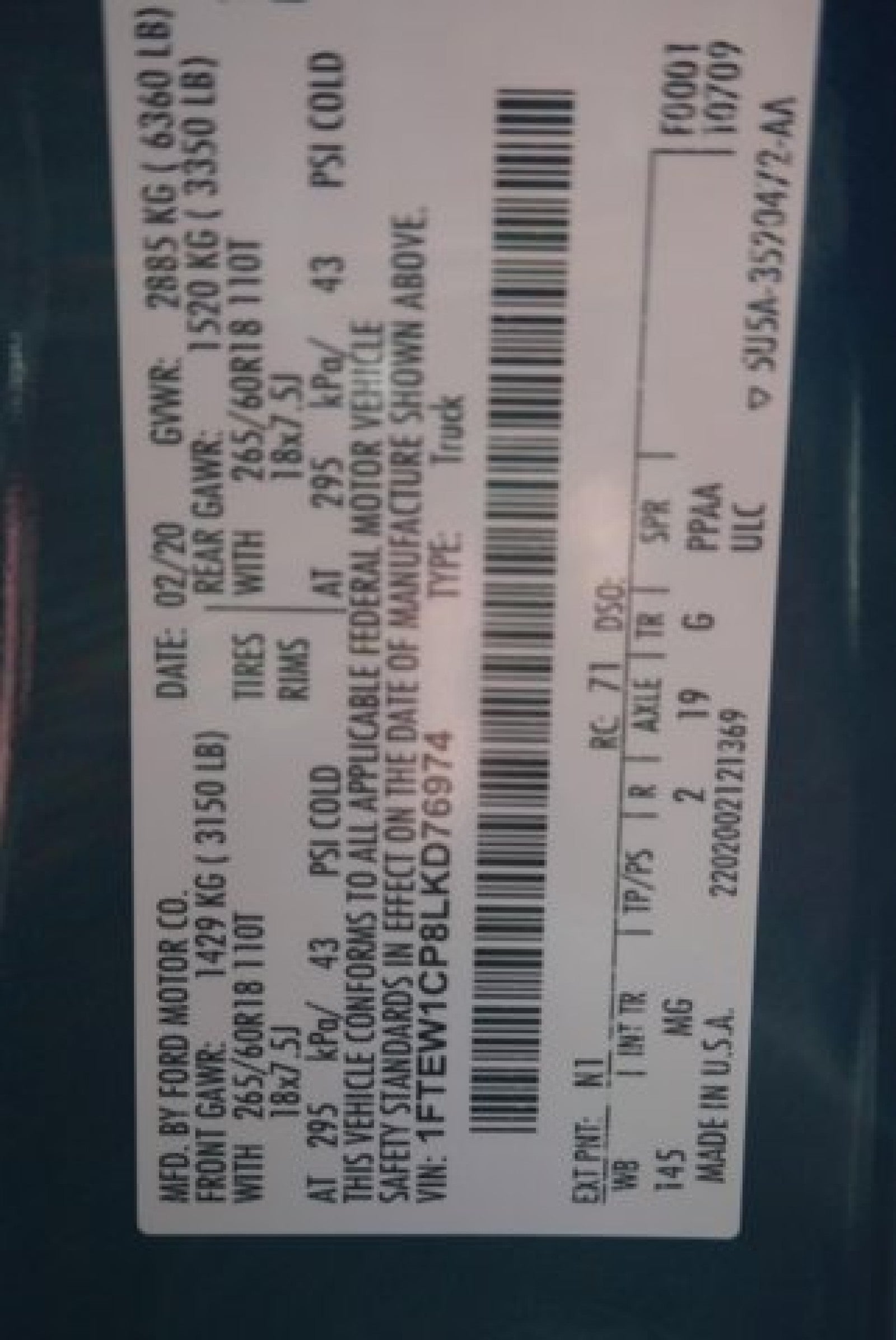- Vehicle Name: Ford F-150