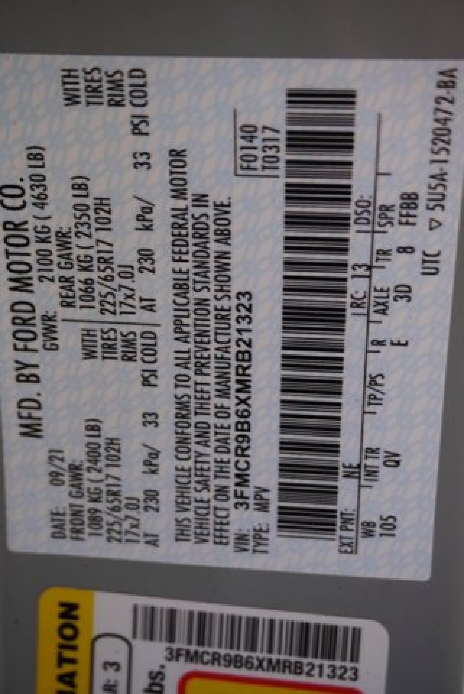 - Vehicle Name: Ford Bronco Sport
