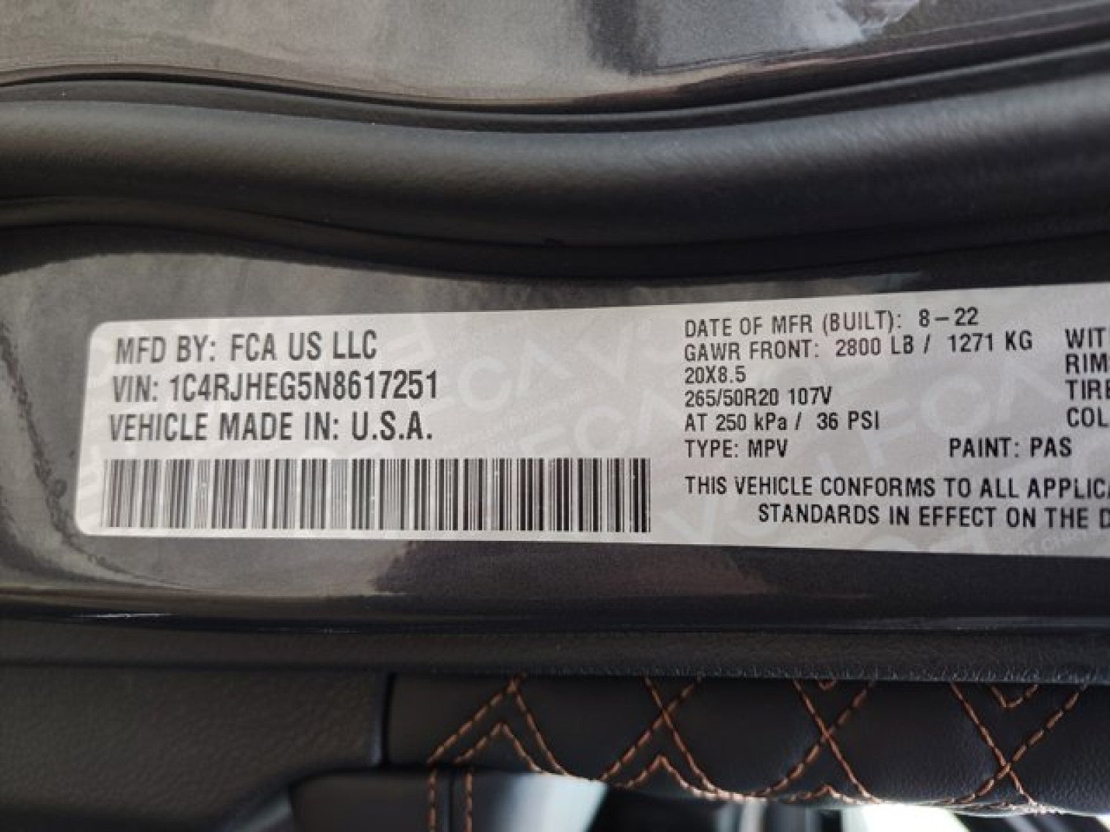 - Front Tire Size: P265/50VR20