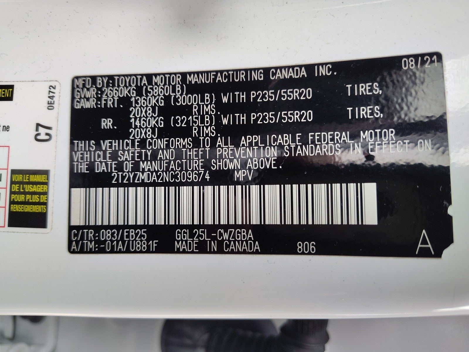 - Front Tire Size: P235/55VR20