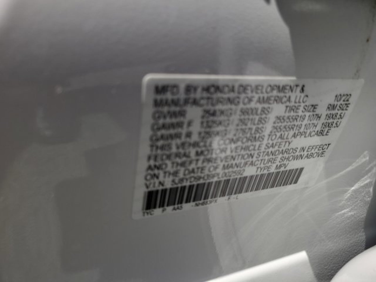 - Rear Tire Size: P255/55HR19